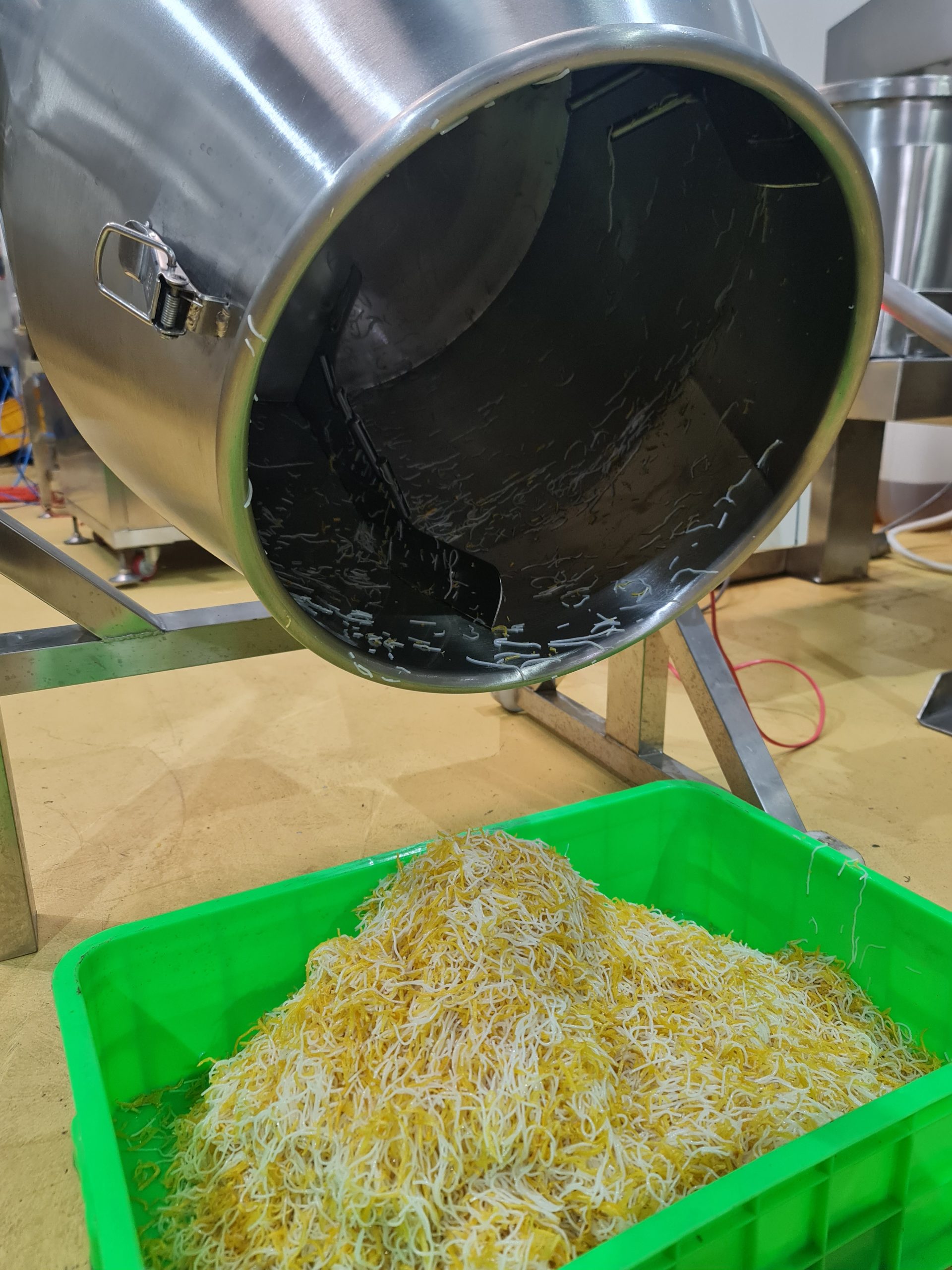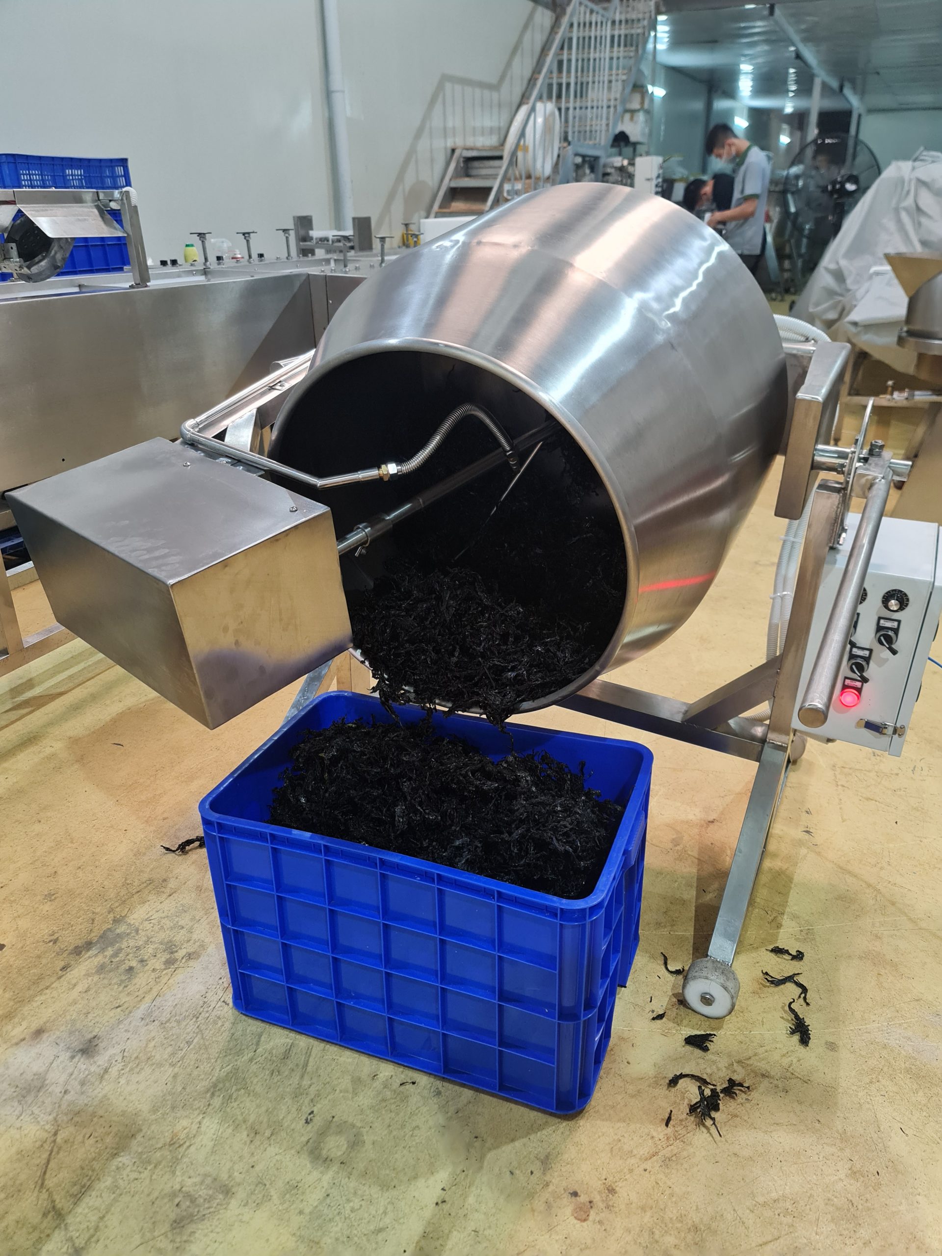 – The machine is intelligently designed, simple, sure, safe for users. The machine has a u-shaped shape, the rotating cage helps to mix the ingredients inside, helping the product to absorb the spices evenly, and the machine is easy to clean.