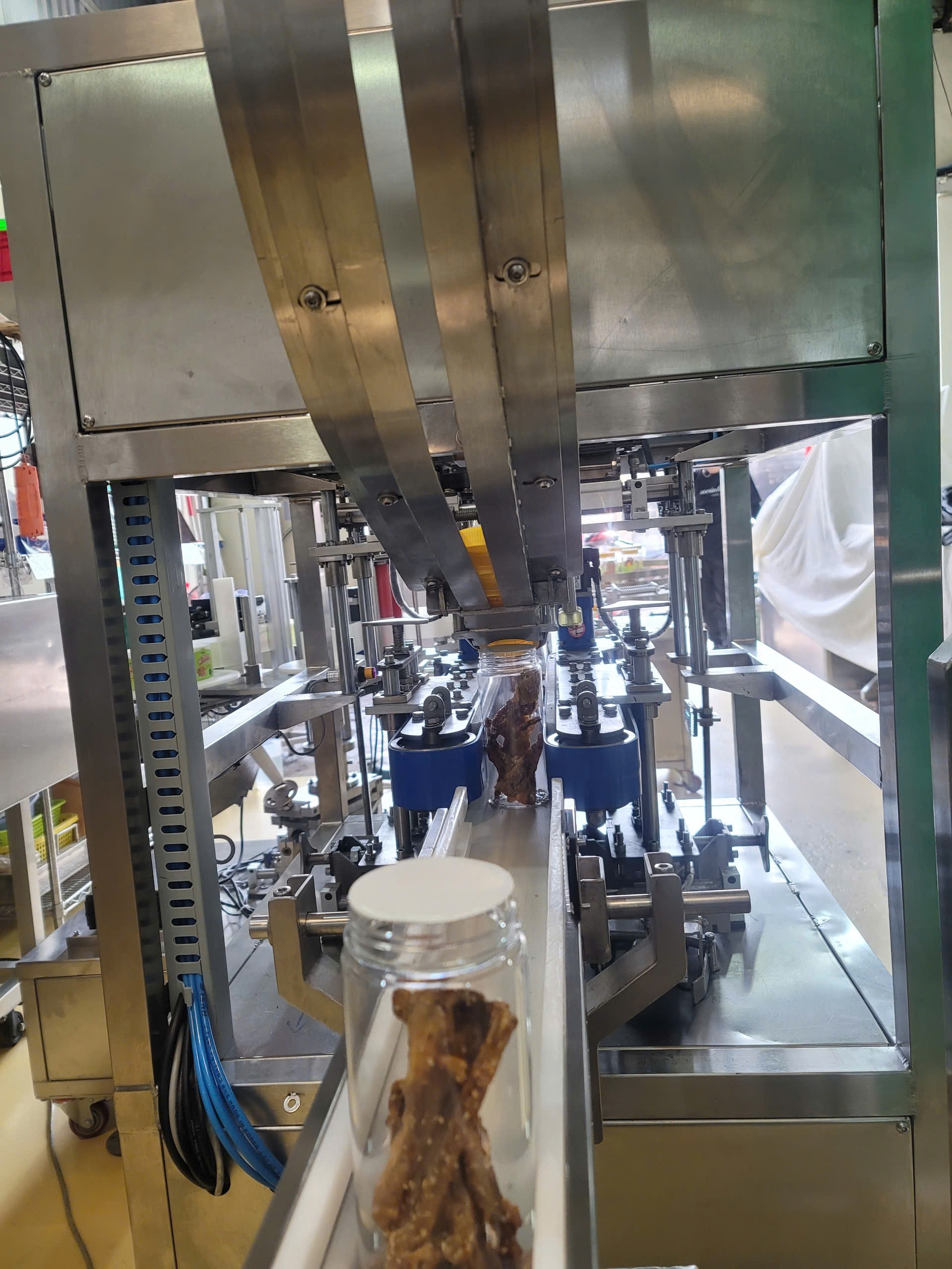 Dried Rimmed Fish Packaging Line – Jar Feeding, Sealing, Capping, Labeling