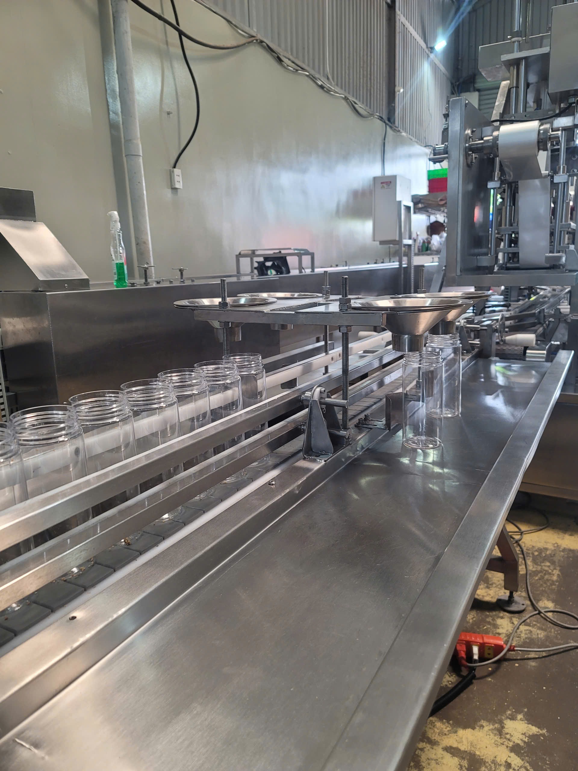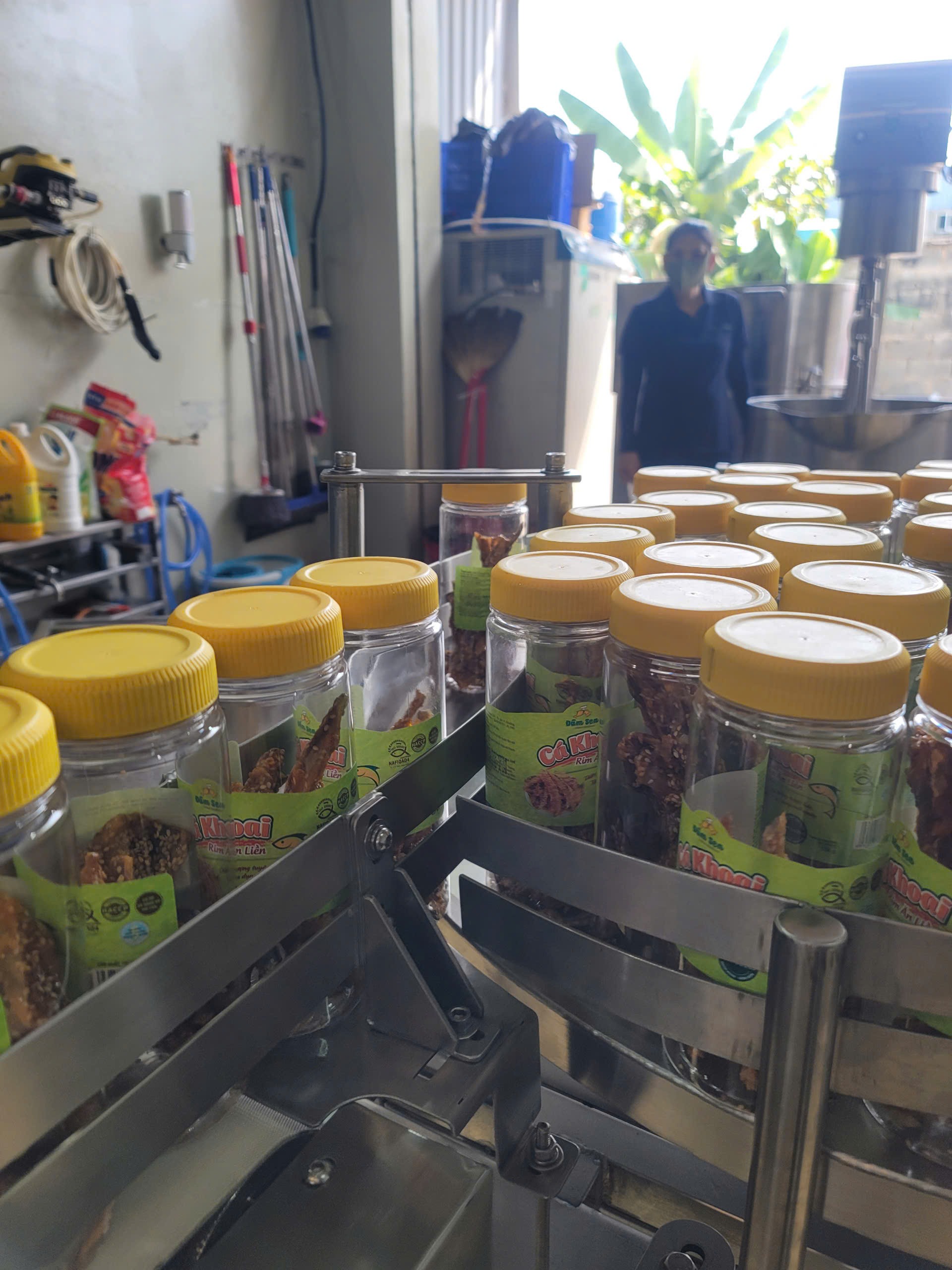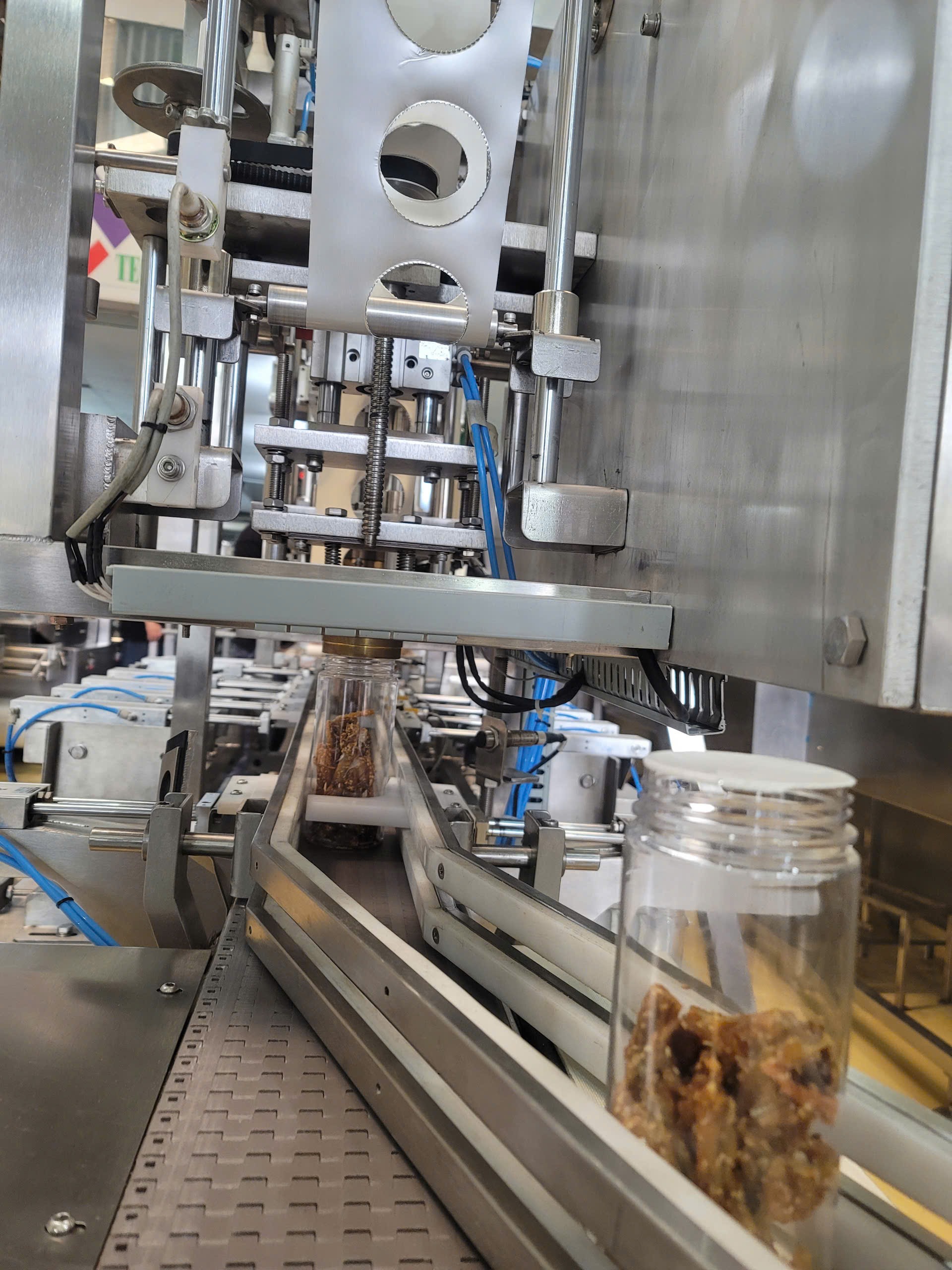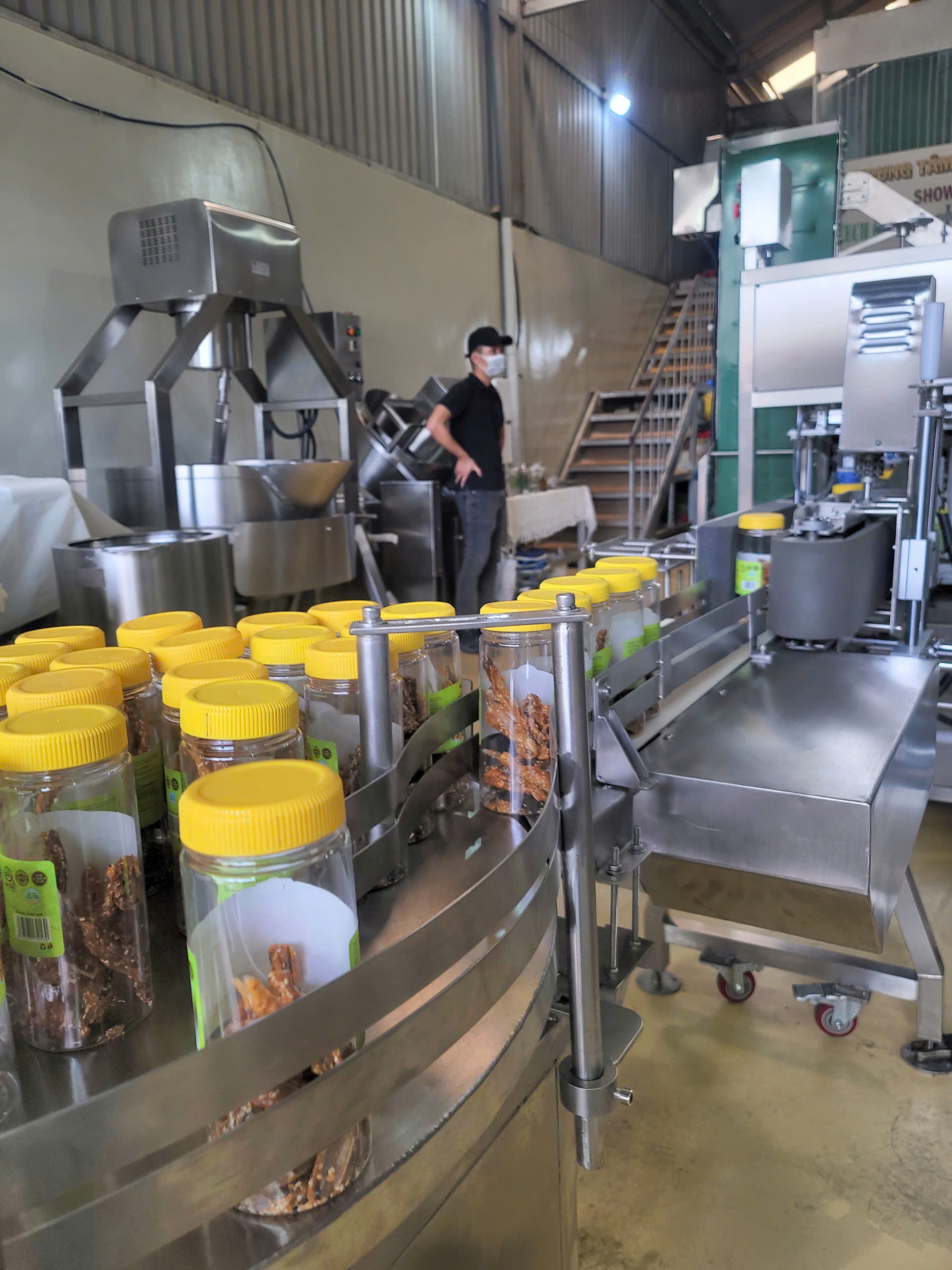 Image 1: Tech Garden’s technical team conducting a trial run of the dried rimmed fish jar packaging line.