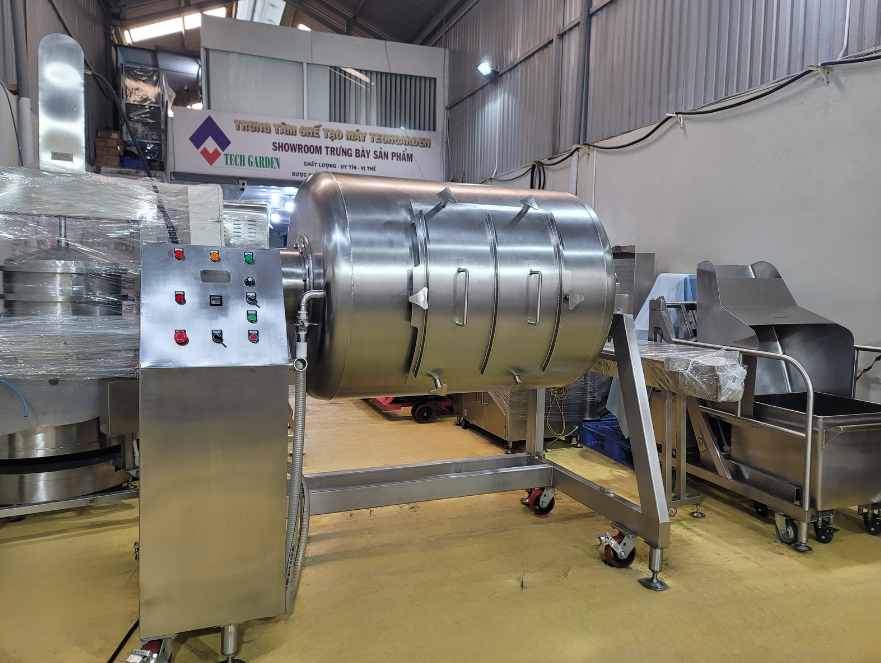 Not only does it shorten mixing and marinating time, but the Tech Garden vacuum mixer can also eliminate air pockets inside the meat. This helps the spices penetrate evenly, keeps the meat soft and supple, ensures product quality, and prolongs preservation time, making the food taste better.