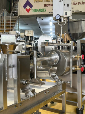 Máy sản xuất bánh canh, bún, bắm tằm, hoặc các loại bánh/bột dạng sợi bởi Tech Garden là một lựa chọn tiện lợi cho các cơ sở sản xuất với công suất lớn. Máy được chỉnh thiết kế phù hợp cho từng loại bánh, đơn giản cho việc thay đổi chỉ cần thay khuôn (kích thước, hình dạng sợi mong muốn) hoặc đầu đùn đặc trưng cho từng loại sản phẩm.