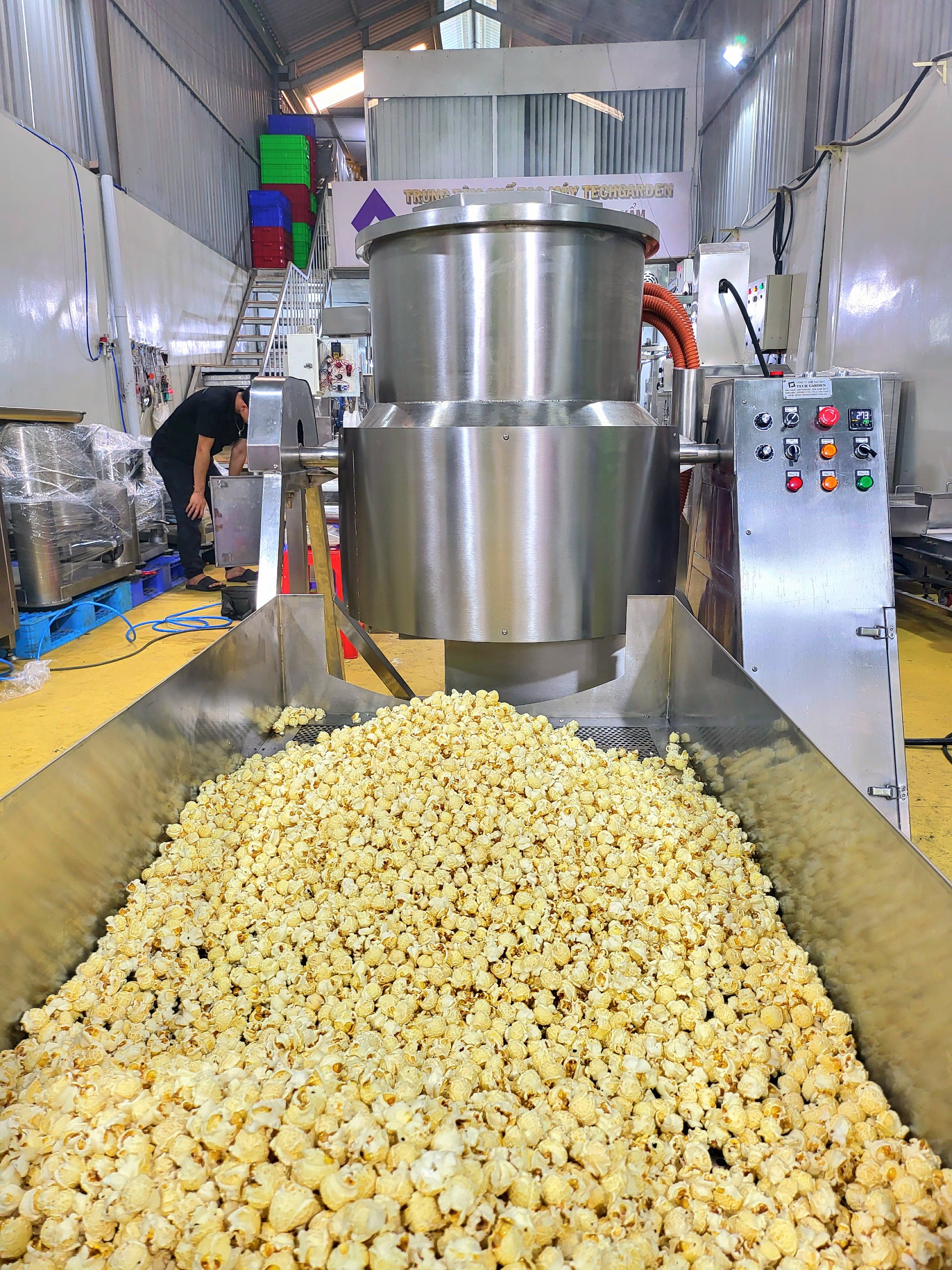Hình 4.2: Dây chuyển nổ bắp rang bơ tự động – test máy trước khi giao khách hàng
